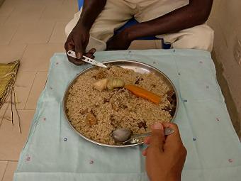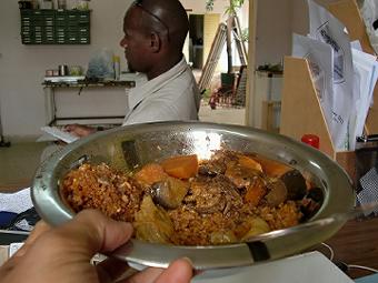 病院コンサート終了・ターラの家 今日は出勤するとたくさんの人にC'est bon(良い)・Felistation(おめでとう)・C'est tais bien passe(良かった)と言われた。特に歌を歌っていたンデラファイが良いと言う。今日は病院内に貼ったポスターをとりに回るが、コンサートはもう終わったけどまだ貼っといて良いと言われ、病院は良い人多しです。今日もターラ家族とチェブジェンを食べる。今日は白チェブにピーマンマスタードをかけて、これまた美味い。 ![]() |