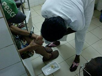 ガス交換メーター・ボランティア来院 冷蔵庫のコンデンサが壊れ、これまた廃棄物からコンデンサを探して新しく移植、これはfrigolist(冷媒技師)のアブライソウがいつもやっている仕事、今日はガスの交換時に使うメーターが割れて油が漏れているのを見て、買ってくれないかな〜。と今日もつぶやく。それは先日の医療機器フォローアップでAとなっているので援助が決まったら必ず買えるものだけど、言うのをやめといた。。それと今日はジャロとレントゲン印刷機の修理。三つあるハロゲンランプの一つの接続部分が燃えていた。いつもは16:00で帰るが今日は18:00までRadiologyにいた。 ![]() 地方の後輩ボランティアが足の裏が腫れてて痛くてまともに歩けないというのでうちの病院に来た。外来に行くがちょっと見ただけなので外科に直接行って診てもらおうと思ったが、ジャロが救急外来の方が良いと言うので行くと、痛いのに無理矢理処置。どこも微妙だ。。 ![]() |