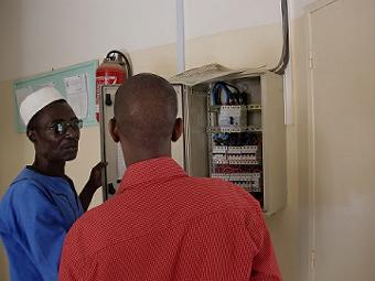 産科でのプレゼン資料を上司に説明 メンテナンス部のヤッシィン・アッサン・アリュー・ファトゥーマタと共にスリランカの5S-TQM改善ビデオを見てもう一度確認。そして、上司というよりカウンターパートService Qualite Hygiene & Securite(衛生管理・保全管理)のNdiouckに産科でプレゼンを行いたい事と、スリランカ5sビデオの説明。1月に大統領選挙があるから12月までを区切りとして各部署の5sコンテストを行おうという事になった。その後、産科に行ってターラと改善点を少しチェックした。メンテナンス視点になってしまうのだが、やはり分娩室の洗面台(写真左)が一番気になる。本当は膝で押すと水がでる仕組みだが水は元栓を開かないと出ない。汚い手で元栓を触るのは良くないと言うと、汚い手を洗うバケツを三つ置いてだんだん綺麗にしてく。仕方ないじゃ済まされない問題。もうちょっと考えよう。。Banq de sang(血液保管銀行)に電気が来ないと言うので見に行くと元のブレーカーが落ちてるだけだった(写真右) ![]() |