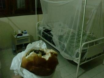 激しい下痢 下痢がほんとひどい。熱と下痢で30分おきにトイレ。先月の健康診断で62kgあった体重が今日は57kg。今日は便の検査をする。首都ダカールにいると医者がすぐ来てくれるし、JICA健康管理員がいるので本当に安心です。夜はハンバーガーを買ってきてもらった。 ![]() |