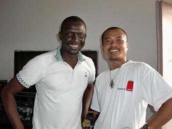 曲完成・22−2次隊帰国 フランス語が聞き取りづらいなんて言ってられないので今日は仕方なく電話してから行く。曲はやっと完成した。が、やはりここはセネガル、停電で確認ができず、スタジオにて一時間待つ。電気が来たので聞いてみると一分もしないうちにまた停電。。次に電気がきたのは二時間後。やっと曲を聴けて持って帰ってきました。これで、帰国隊員のソワレ(送別会)にちょこっとしか行けませんでした。。 ![]() 曲をMIXしてくれたTahir MBAYE、彼はニューヨークに11年住んでたらしい。スタジオの窓から見える風景(写真右)、場所は「Golf-Sud」というカルティエにある。
