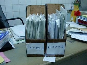 ファイル整理箱配布・カルテ入れ製作 今日はMedecine(内科)のドクター二人に5sを説明して、ファイル整理箱を二つずつ配った。隣のMajorの部屋に行くとカルテをFEMMES(女性)とHOMMES(男性)に分けるのに使っていた。ちょっと使い方が違うけど机も整理されていて良い感じ。どの部署もカルテが溢れてて木が余ってればカルテ入れが製作できるのにな。。とりあえずメンテナンス部に戻り、作りかけのカルテ入れを製作した。 ![]() |