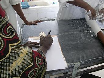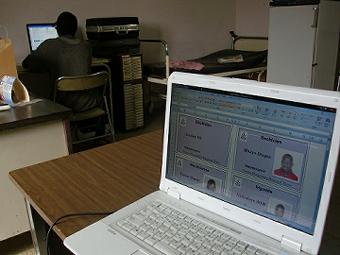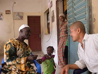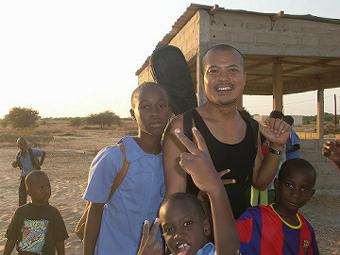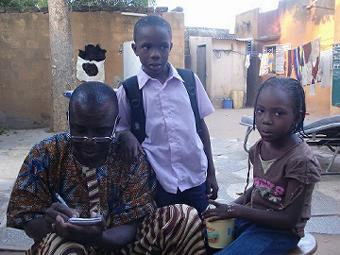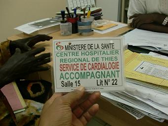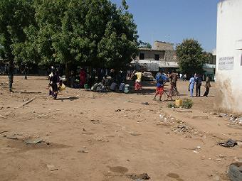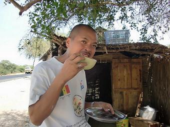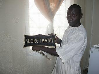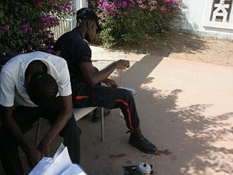 職員証明書の写真撮り 二日目 昨日も今日も朝から17:00まで何も食べずに各部署で写真を撮り続け、けっこうきつい。セネガル人の書くアルファベットは見にくいし、何度も撮り直すおばちゃんと他人の顔を笑うお姉ちゃん、いろいろ大変だがおもしろい。病院のガルディアンとアタイヤで休憩(写真右) ![]() |