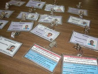 全職員分の職員証明書バッジ製作 職員証明書バッジの反響がすごく院内の職員に、うちの課も欲しいと言われる。今日は院長と話した結果、院長がバッジは患者にも重要で、またセキュリティになるし、裏に載せてある5sもPRになるから、全職員分作ってくれと言われた。今現在職員が何人いるか不明だが200人くらいいると思う。来週全職員に証明書バッジを作るから全職員がつける事という回覧を回すとのこと。来週からターラと二人でがんばります。それと産科の5s研修について話すと、自分はいままでと同様に他の部署でも行っている軽い説明会をしたかったのだが、院長はプロジェクトとして予算をつけてノートやペンを配り、日当をつけて全員参加をさせたいという。保健省から予算がとれれば良いが。。ついでにchef de financier(財務部長?)のところにも行って説明するとこんなバッジも作ってくれと言われる(写真左)、これは保健省が配った患者付添人の証明書カードです。右の写真は自宅前でガルディアンのバラが新しい花を植えてるところ。 ![]() |