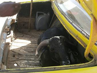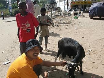 羊を買う イスラムの祭典「タバスキ」が明後日にせまり、街は日に日に羊が増え、今日はとうとう買ってしまった。中くらいの大きさで60,000fcfa(12,000円)。全身が黒くてかわいい羊、ベタだが「ひっつー」と名付けた。そのままターラの家に持って行き、ターラにPetit cadeau(小さなプレゼント)と言って置いてきた。 ![]() 羊が暴れて運びにくいのタリベ(物乞いの子供)三人に500fcfaで運ばせたが、途中で暑くなりタクシーの荷台に乗せて運ぶことにした。 ![]() |