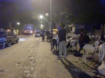 タバスキ前日 タバスキ前日、しかも今日は日曜なので朝から人がたくさんいる。羊売り場は夜中もやってます(写真右)。今日も近くの屋台でヤッサ(玉ねぎソースかけご飯)を食べる。夜は久しぶりに同任地隊員とのご飯、ティエス新隊員二名の赴任祝いと誕生日祝いを兼ね、自分は今回もチョコレートケーキとチーズケーキを作る。 ![]() |