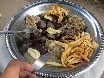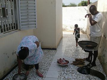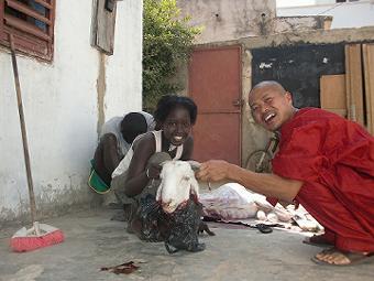 タバスキ タバスキは犠牲祭の事で、今日もターラが歴史を話す。イブラヒマがアラー(神)の預言で息子を犠牲にしなければならない状況になり、苦悩した結果、実行しようとしたところアラーが天使を使って息子と羊をすり替えたらしい。そこからイスラムの行事として羊を屠るようになり、羊を買える家が貧しい家におすそわけをする文化があると言う。この話はターラおじさんから何回も聞いてるが、フランス語で聞くからちょっと違うかもしれない。今回はターラと二匹さばいたが、もう一人で普通にさばけるかも。午前中は外に人があまりいなくて、午後になるとセネガル服を着て近所周りをするセネガル人で溢れかえる。 ![]() これからジャーラと頭の皮を剥ぐ。後ろでマムシェイが体の皮を剥ぎ、ターラが肉を綺麗に取ってます ![]() まず、レバーの玉葱ソースがけとポテトフライを食べ、その先は肉三昧。 ![]() ホームステイ先の家にもちょこっと行った。ハディとパピが羊のキンタマを綺麗にしてるとこ(写真左)。やわらかくて美味い。 |