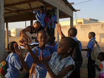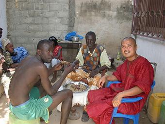 隣村でフェット 隣村でお祝いがあり、呼ばれたのでギターを持って行ってきた。チェブヤップ(牛肉チャーハン?)をたらふく食べてきた。 ![]() ユッスンドゥールとビビアンを子供達と歌い、ギターをちょこっと教える。ちなみに肩に貼ってあるのはエレキバンじゃなくて、蚊に刺されパッチ。 ![]() |