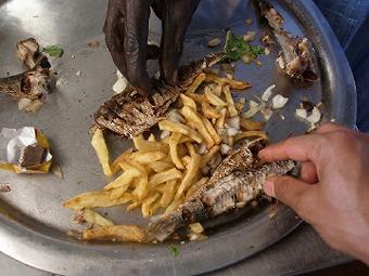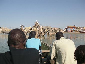 サンルイ島 帰りにセネガルの旧首都であるサンルイ島で豪華マフェを食べ家路へ。写真は陸から25fcfa(5円)で船に乗りサンルイ島へいくところ。おみやげの布を買い、そろそろ帰国準備です。 ![]() |
