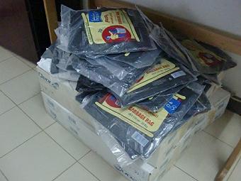 財政部長と打ち合せ Chef de financier(財政部長)のバップといろいろ打ち合せ。証明書はプリンターで印刷した場合インクがいくらかかるか、印刷屋にラミネートまで一括でお願いしたらいくらかかるか、とりあえず予算を出せということになった。前からお願いしてた棚を作る為の木もは前向きに検討してくれるとの事。バップの秘書室にある棚は今にも落ちそうだから作り直したい(写真左)。ゴミ袋をたくさん買ったが全く使ってなく放置(写真右)、ゴミ袋よりゴミ箱が欲しいって言ったのに。。11月も後半になり、少しずつティエスも涼しくなってきた。といっても暑がりな自分は一年中扇風機全開だけど。雨季は洗濯物にも扇風機をあてないと乾かないし、今月の電気代支払いは35,260(7,000円)、電話代が固定で毎月27,450fcfa(5,500円)、今日は水道代2,060fcfa(400円)を支払い。ガルディアン代とゴミ廃棄代、けっこうお金かかります。 ![]() |