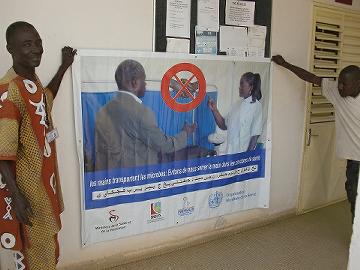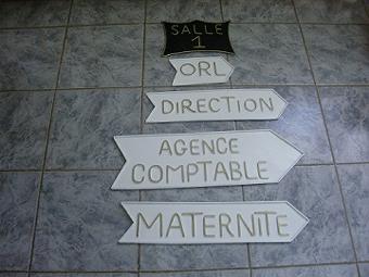 院長と打ち合せ JICAセネガル事務所から企画調査員が来て一緒に院長と話し合い。言葉の問題で院長にうまく伝えられなかった事や院長の意見等をいろいろ聞く事が出来た。焼却炉についてJICAの支援で隣国マリで稼働している大型かまどを院長に見に行く事を勧めたり、今後この病院をセネガルでの5sパイロット病院にする等、さすが企画調査員です。保健省とJICAから5s予算をとる計画の見直しをして、今月と来月で全職員に5sを周知し、内科・放射線科・産科で研修を行う事を計画したが、どこまでうまくいくか。。右の写真は院長が注文した案内表示板。打ち合せ後またターラと証明書写真撮り再開。 ![]() さっそく財政部長秘書室の棚を木工のンバイカに修正してもらう事にした(写真左)。今日は途中で病院食チェブジェンを食べ写真撮り再開。写真を撮り過ぎて自分のデジカメの電池がなくなり、ターラのデジカメでチェブジェンを撮る。 ![]() |