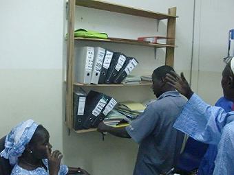 待合室の椅子製作 待合室の椅子を作る為にバブーが板を買ってくれたのでンバイカと椅子作り。セネガルの椅子と言えばこの形というものがあり、セネガル中で見る事ができる。完成したら各部署の名前を書いて盗まれないようにしたい。また、今日は各部署でゴミ箱がいくつ必要か、聞き取り調査をする。右の写真はUrologie(泌尿器科)にあるカルテ、綺麗にしたい。。 ![]() |