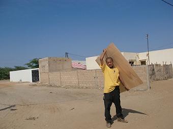 自宅のドア補修 玄関の鍵が壊れ、ドアが開かなくなり、仕方なくドアごと壊して鍵を付け替え、板で補修。セネガルで売っている鍵はどれも中国製の質の悪い鍵しかなく、鍵がよく壊れます。。右のバイクはターラのバイク、壊れたベットの部品で荷台を作って、ラミンジャロに溶接してもらって完成。廃棄物は宝の山だ。 ![]() |