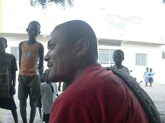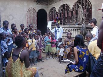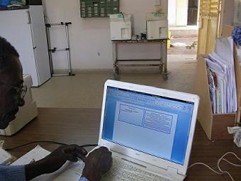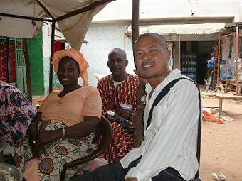 バッジ作り 今日は土曜日だけどアリが病院で一緒に職員証明書バッジを作ろうと言うので出勤。バッジの色について先週院長が玄関前の案内板の色と同じにしようと言うのでアリと色を調べてるところ(写真右)、昼はアリの家に行ってチェブジェンをいただく、アリの家は大家族で一つのご飯を10人で囲んで食べ、アリの子供ファロ(右の写真手間の子)とディタのジュースを一緒に飲み、ブイのアイスを一緒に食べ、子供になった気分。。また職場に戻り19:00までバッジ製作、アリは明日もやろうと言うが日曜日は休みたいから嫌だと言ったら彼は一人でやるとの事。ま、いいとした。 ![]() |