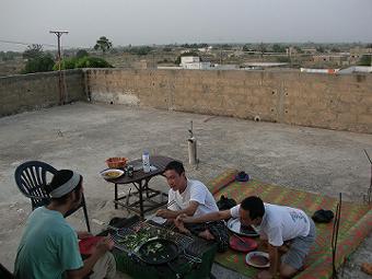 バーベキュー・ドラム缶風呂 後輩隊員が来たので屋上でドラム缶バーベキュー。大自然をバックに良い感じだが、今日はかなりの砂嵐と乾燥で肉がすぐ燻製みたいになる。。夜が更け、突然風呂に入りたくなり自宅から後輩隊員の家まで四人でドラム缶を歩いて運び、今日は縦バージョンの風呂を楽しむ。ホッシーの歌は今日も絶好調だ。 ![]() |