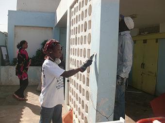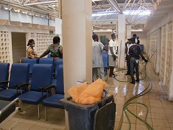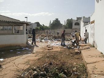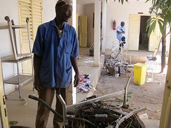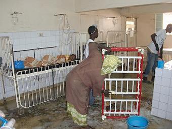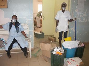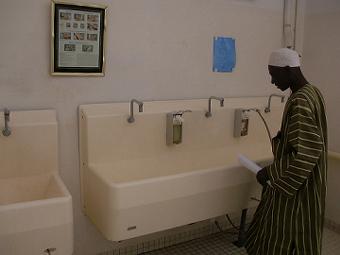 病院大清掃一日目 病院初のSet-Setal(大清掃)大成功。土曜なのに思った以上に職員が出勤し、全員が清掃しました。みんな5s C'est bonと言ってくれて今日で5s浸透率90%越えたかも。また、病院幹部にマラブー(イスラムの準教祖?)がいて今回も高校生や専門学生がたくさん来てくれて掃除も早い。自分は写真を撮りまくり、帰ってみたら200枚以上撮ってた。産科の裏庭、院長と回る(写真左)、初診棟(写真右) ![]() 後ろのベッドに患者が寝てるけどかまわず清掃する小児科と研究棟(写真右) ![]() 途中ターラと倉庫に眠っている使えそうなビーカー?を一つずつ掃除、最後にアブライと廃棄医療機器を紐で囲んで終了 ![]() |