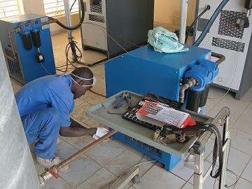 医療機器の5s 日本から医療機器の援助品が来る予定である今、今後病院側がやらなければならない事を事前にプレゼンしたいと思い、メンテナンス部員に説明するとともに資料作成を始める。医療機器を個別に判別するために台帳管理はメンテナンス部が行う。その際、メンテナンス部が機器台帳番号を決め、機器名、機器構成、メーカー名等の基本的な情報を入力・管理をする。これはジャロに何度も説明しているが、医療機器の清掃は機器の使用者の責任であり、使用者による日常の使用過程と予防保守点検の過程で実施されるもので、正常な機能を保つ為に不可欠な操作過程である事を説明するプレゼンを作成。説明した後アリューが血液検査機を拭いている(写真左)。まだ一年も使ってないが中央酸素室のファンが一週間前に壊れて、簡単に修理できなくて、代理店を呼んだ(写真右)。夕方同期隊員と1月に予定しているイベント会場CCRTを視察、市内から20分くらい歩くが綺麗なステージがあるし、展示パネルも20台あって良いかも。 ![]() |