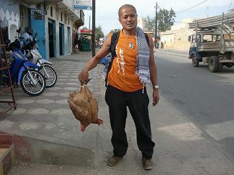 鶏二匹をさばく 暑くてもいちおうクリスマスなので、マルシェで鶏を買って家で絞めてから揚げに。名古屋コーチン風の鶏2匹で5,000fcfa(1000円)、テリヤキにして美味しくいただきました。 ![]() |