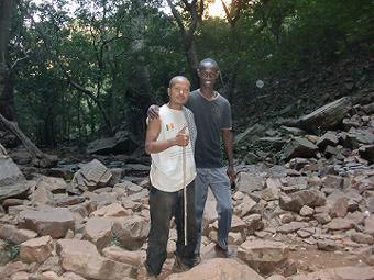 セネガルとギニアの国境 タンバクンダからケドゥグ方面に向かい、途中で綿花を栽培しているおじちゃんに出会い、ちょっとお手伝い。 ![]() セネガルとギニアの国境付近、左の写真は案内人のモマドゥ。ギニア人に混ざって国境までの山道を進む(写真右)。 ![]() 基本セネガルは砂しかないけど、ケドゥグ付近は石道がある。